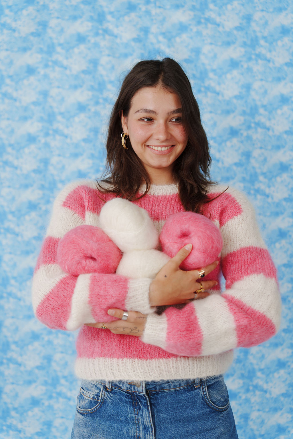 Lyvie est un pull doux et aérien, parfait pour se blottir grâce à son fil Cumulus mousseux. Tricoté avec des aiguilles de taille supérieure pour obtenir un effet de légèreté et un tricot lâche, il présente de larges rayures colour block qui ajoutent une touche moderne et stylée à ce modèle cocooning. Le pull Lyvie est le projet parfait pour les tricoteuses débutantes qui souhaitent se lancer dans leur premier vêtement.