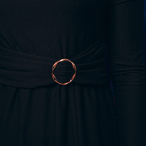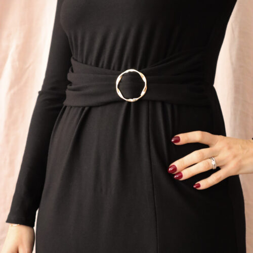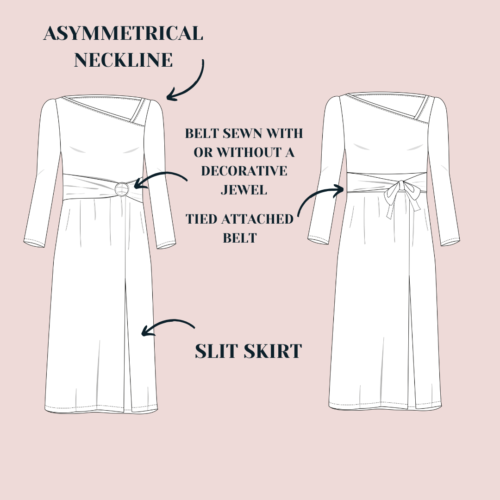 Queenie est une robe en jersey au design élégant, avec une encolure asymétrique et plusieurs options de ceinture pour personnaliser votre look. Vous pouvez choisir de sublimer votre taille avec un drapé uniquement sur le devant ou d’ajouter une touche raffinée grâce à un bijou. Le buste ajusté et la taille élastique assurent à la robe un maintien parfait tout en offrant une légère aisance à la jupe. Une fente placée sur la jupe ajoute une touche sensuelle tout en garantissant liberté de mouvement et d’élégance.