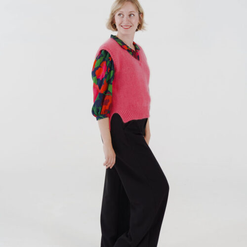 Gaby, c’est le slipover qu’on enfile sans réfléchir, et qu’on ne veut plus quitter. Avec sa coupe légèrement oversized, son col V et ses fentes latérales, il joue les superpositions toute l’année : sur une robe, une chemise ou un simple t-shirt.