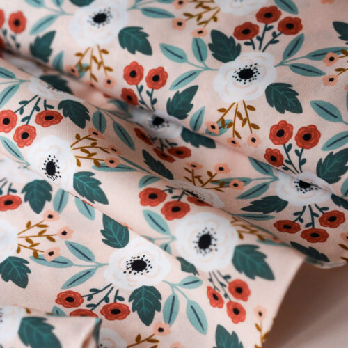 Anémone – Des fleurs éclatantes aux cœurs profonds, mêlant rouge brique, blanc doux et feuillage vert sauge sur fond rosé, comme une parenthèse lumineuse et réconfortante au cœur de l’hiver.
