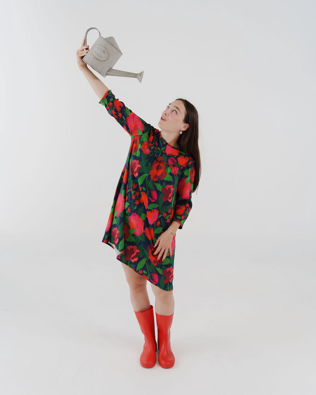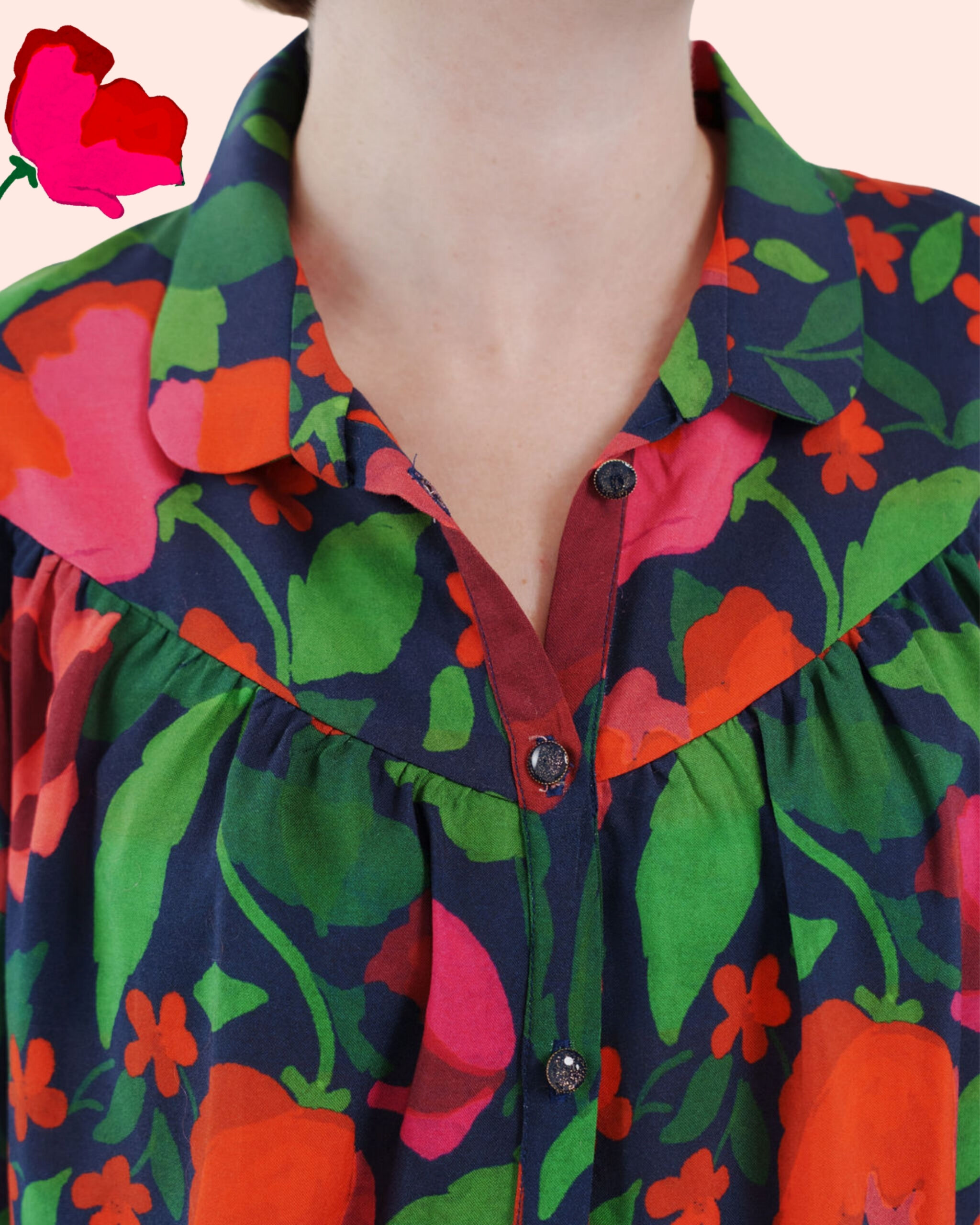 – Tous les boutons coloris encre et red poppy se marieront à merveille avec ce tissu