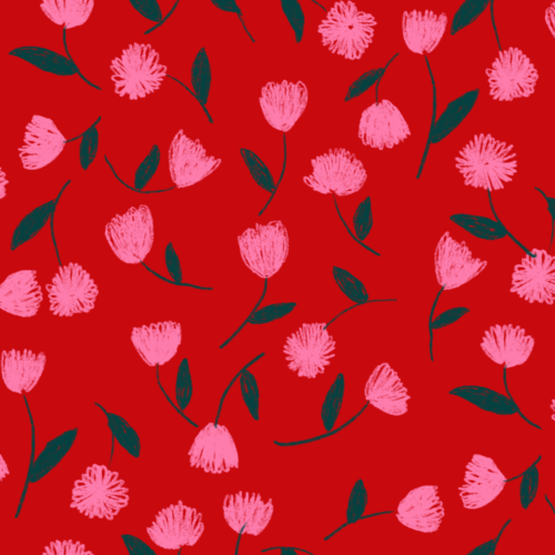 Scarlett – Avec son fond rouge flamboyant et ses fleurs esquissées en rose vif, ce motif évoque la chaleur vibrante d’un été passionné, où la nature s’épanouit sous un soleil ardent.